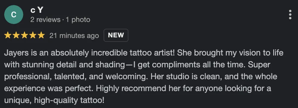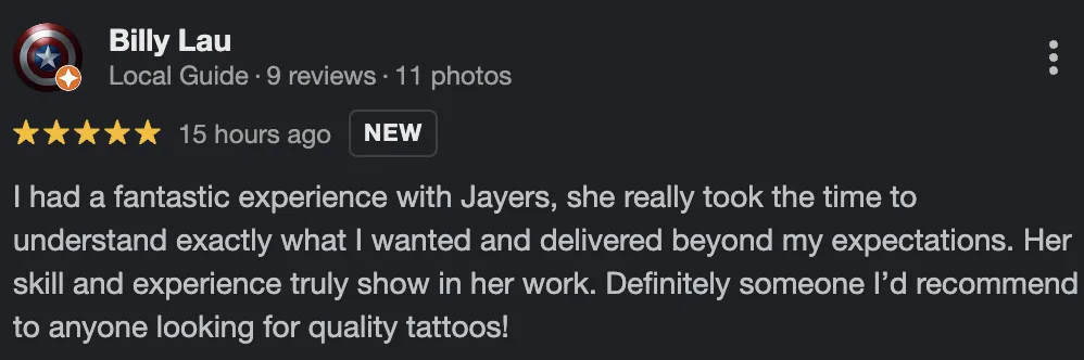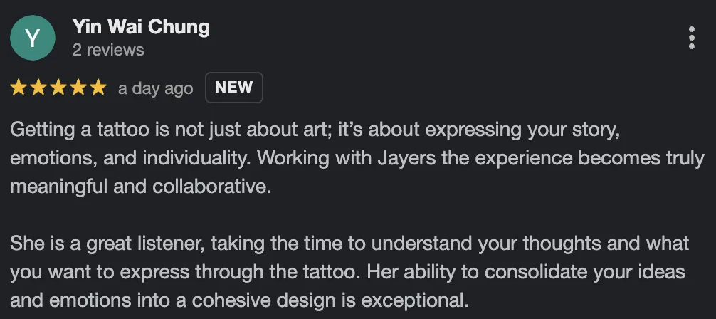 I look forward to getting to know your tattoo ideas and turning them into reality!